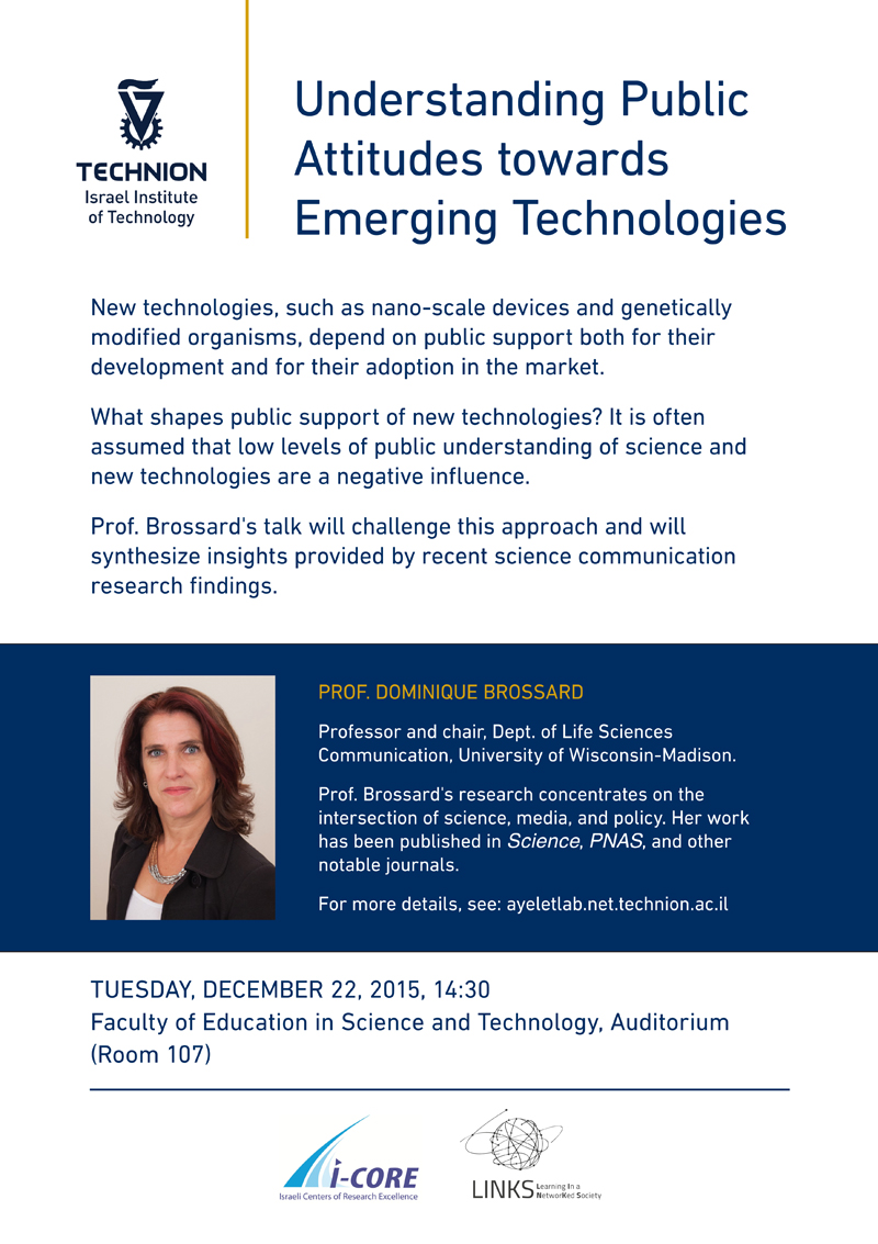- A professional development seminar for high school biology teachers, entitled “The Biology Talk”, organized by Aviv, on Sunday, December 13, 2015, at 9:30 am (Pre-University Education Building, Auditorium).